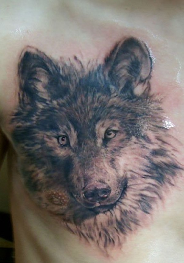 男人胸前超酷凶狠的狼头纹身图案_胸部纹身图案大全_纹身图吧