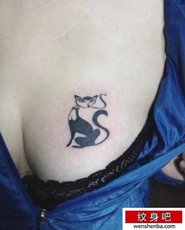 胸部性感的猫咪纹身图案_胸部纹身图案大全_纹身图吧