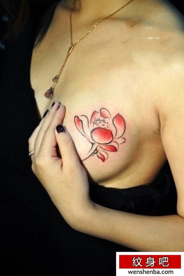 胸部彩色莲花纹身图案_胸部纹身图案大全_纹身图吧