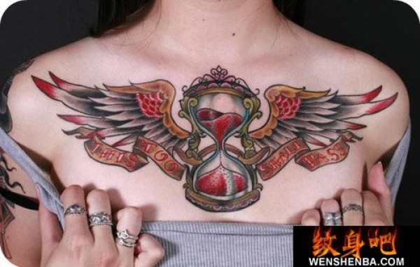 美女胸前沙漏纹身_胸部纹身图案大全_纹身图吧