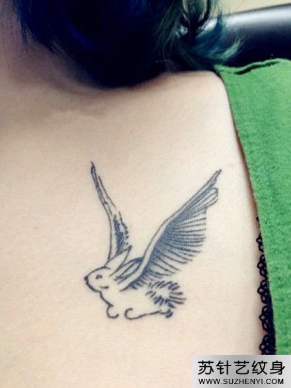 胸前飞翔玉兔可爱纹身_胸部纹身图案大全_纹身图吧