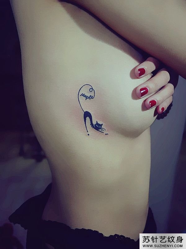 性感胸部猫时尚纹身_胸部纹身图案大全_纹身图吧