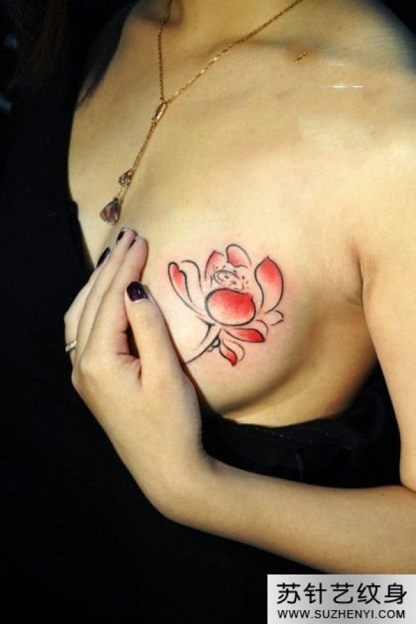 胸部美丽莲花刺青图案_胸部纹身图案大全_纹身图吧
