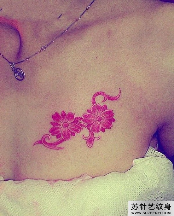女人胸部娇艳梅花纹身_胸部纹身图案大全_纹身图吧