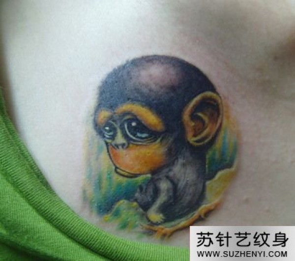 胸前可爱小猩猩纹身_胸部纹身图案大全_纹身图吧