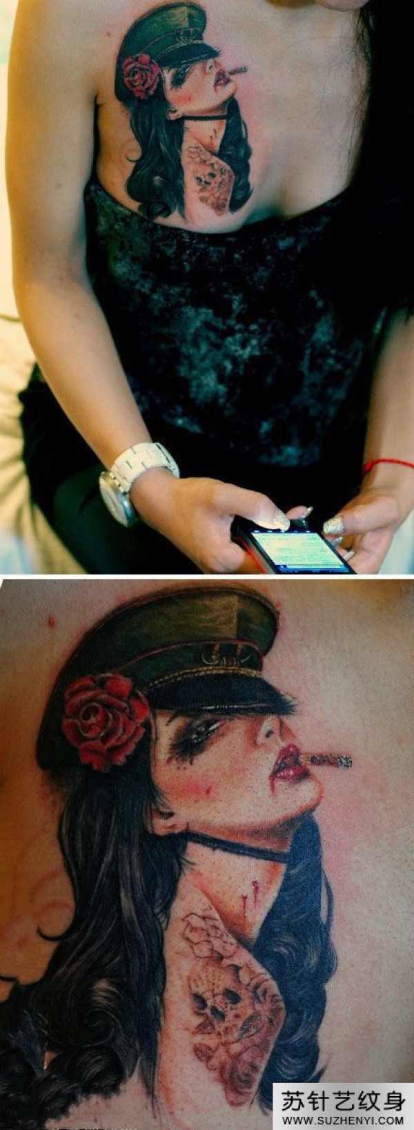 性感抽烟美女胸部纹身_胸部纹身图案大全_纹身图吧