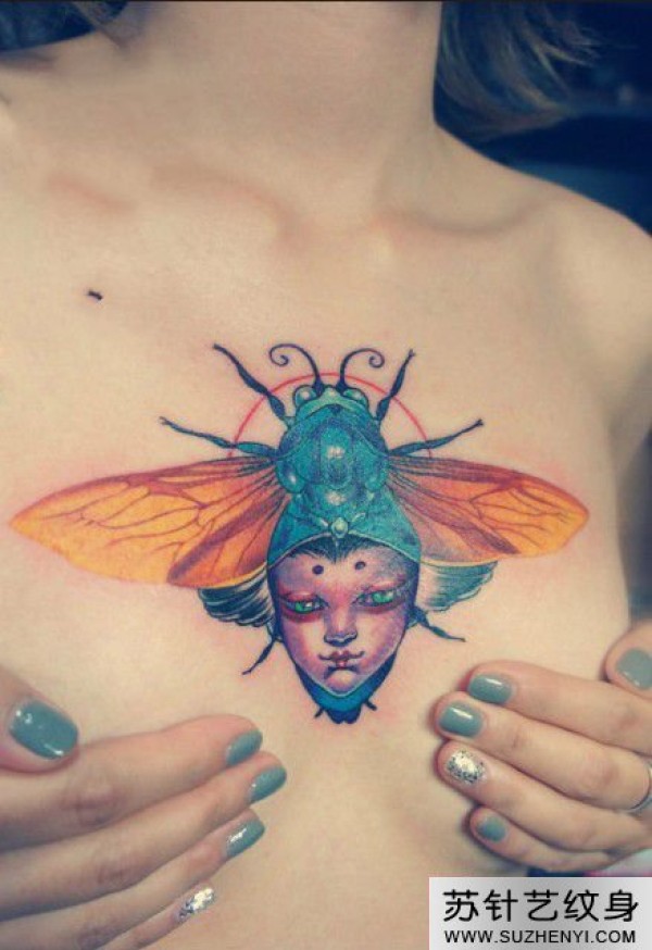 胸前创意夏蝉纹身_胸部纹身图案大全_纹身图吧