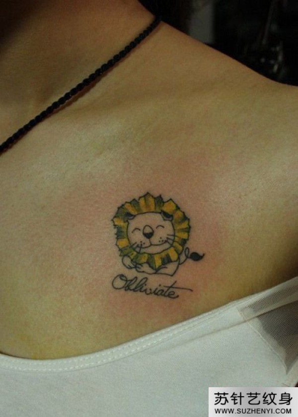 胸部时尚小狮子头像纹身_胸部纹身图案大全_纹身图吧