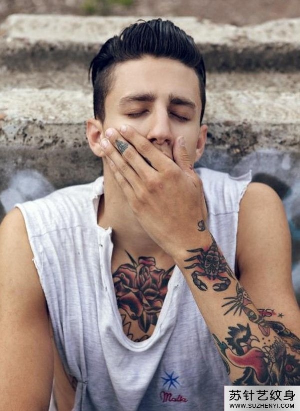 男人胸前超酷霸气的蝎子纹身图案_胸部纹身图案大全_纹身图吧