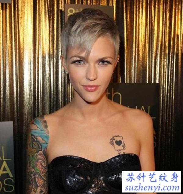 鲁比·洛斯胸前手臂个性纹身图案_胸部纹身图案大全_纹身图吧