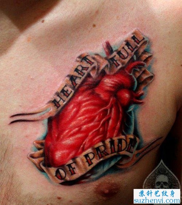 艳丽胸部彩色心脏纹身_胸部纹身图案大全_纹身图吧