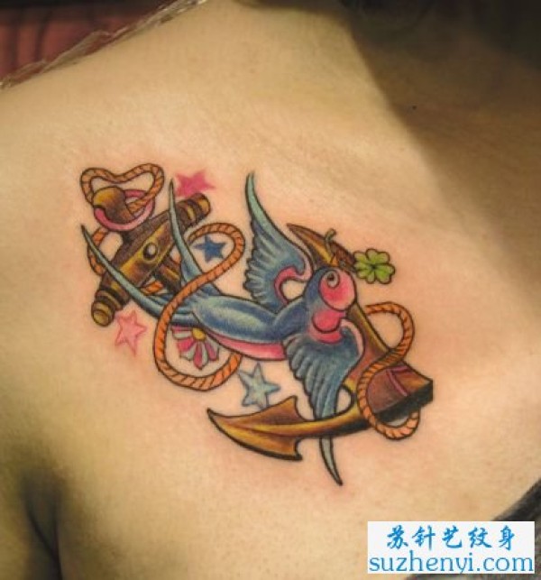 胸部小燕子铁锚纹身_胸部纹身图案大全_纹身图吧