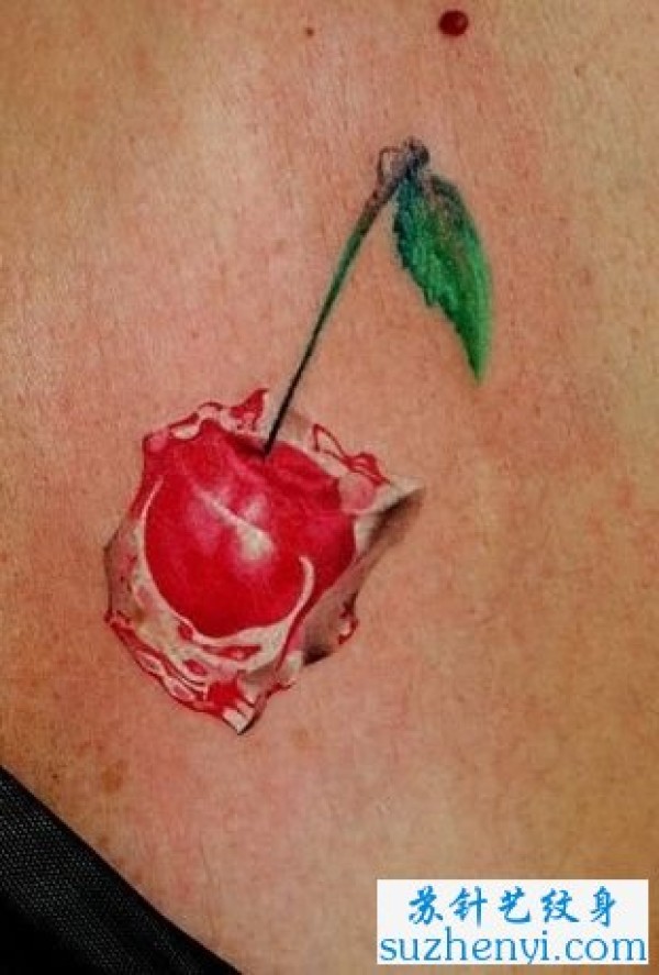 胸部彩色樱桃纹身_胸部纹身图案大全_纹身图吧