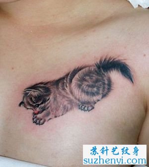胸前小猫咪纹身_胸部纹身图案大全_纹身图吧