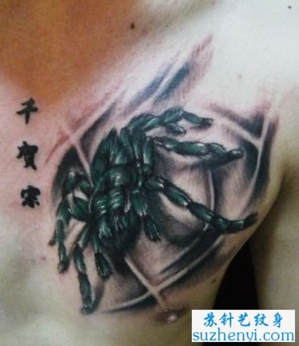 胸部的蜘蛛纹身_胸部纹身图案大全_纹身图吧