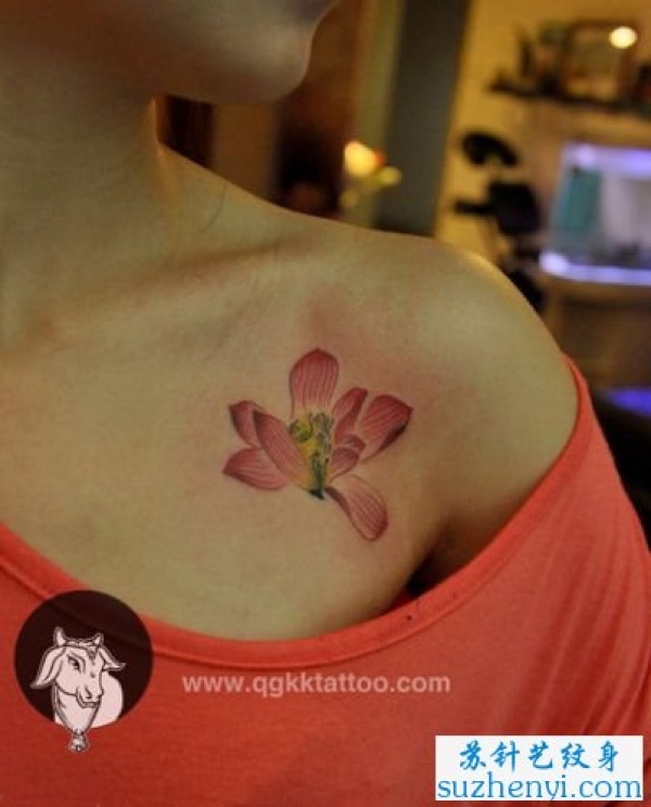 胸部彩色莲花纹身_胸部纹身图案大全_纹身图吧