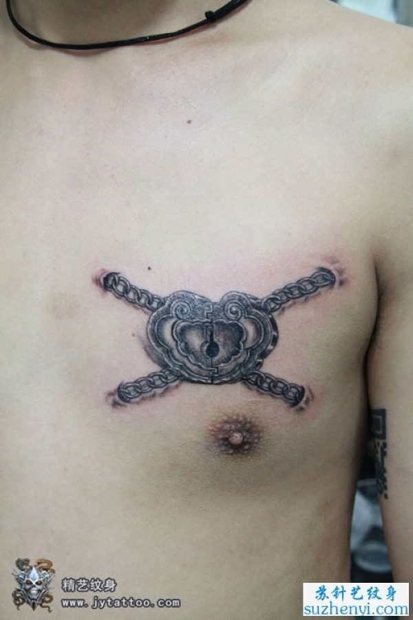 胸部心锁纹身_胸部纹身图案大全_纹身图吧