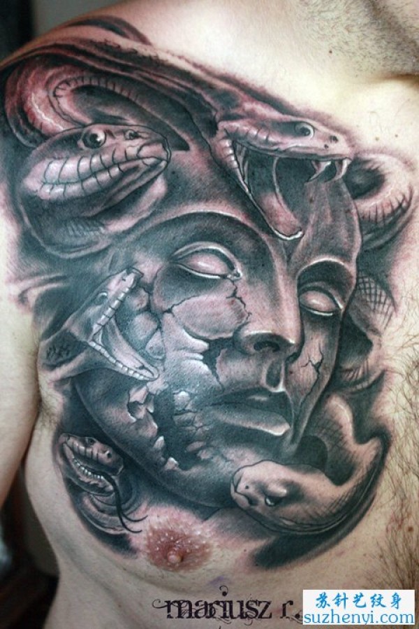 胸部美杜莎纹身_胸部纹身图案大全_纹身图吧