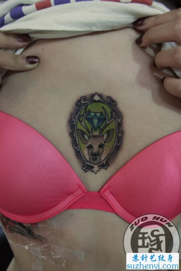 胸前镜子小鹿与钻石纹身_胸部纹身图案大全_纹身图吧