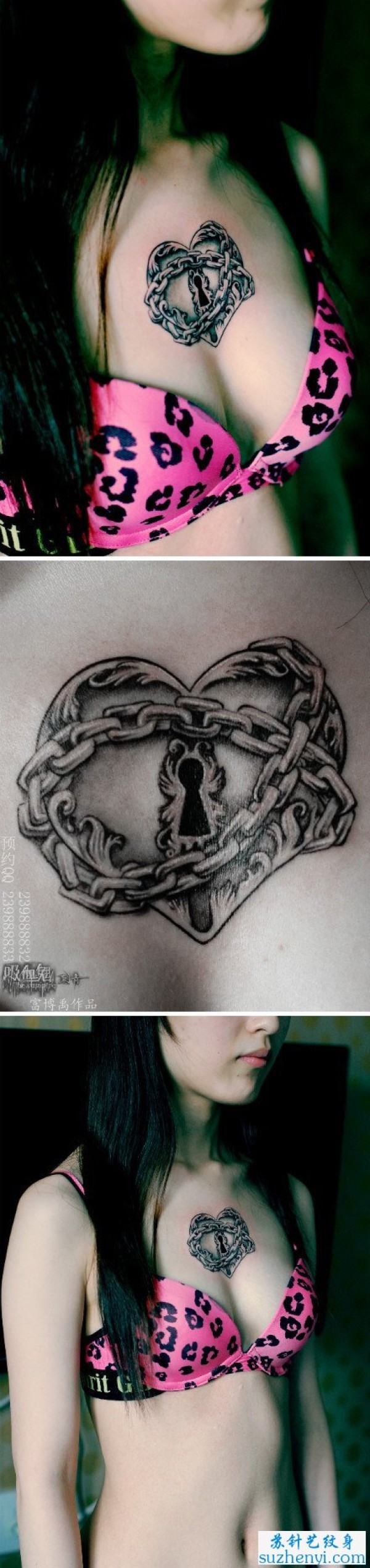 胸前爱心锁纹身_胸部纹身图案大全_纹身图吧