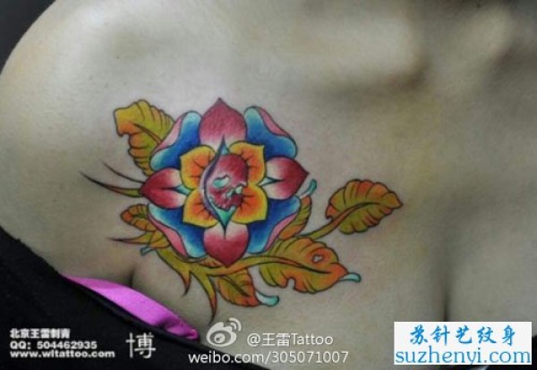 胸部彩色花卉纹身_胸部纹身图案大全_纹身图吧