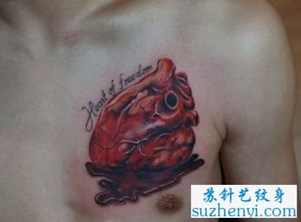 胸部彩色心脏纹身_胸部纹身图案大全_纹身图吧