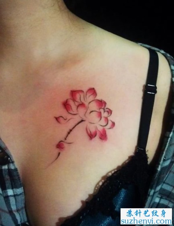 胸部水墨画莲花纹身_胸部纹身图案大全_纹身图吧