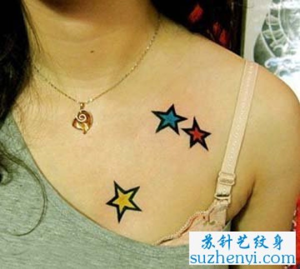 胸部彩色五角星纹身_胸部纹身图案大全_纹身图吧