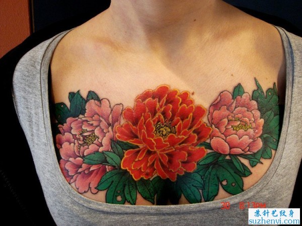 胸部牡丹纹身_胸部纹身图案大全_纹身图吧
