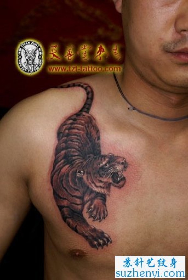 胸部猛虎下山纹身_胸部纹身图案大全_纹身图吧