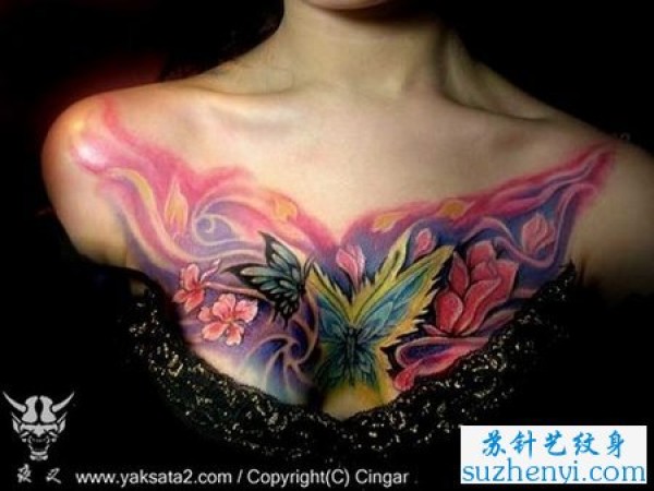 胸部蝶恋花纹身_胸部纹身图案大全_纹身图吧
