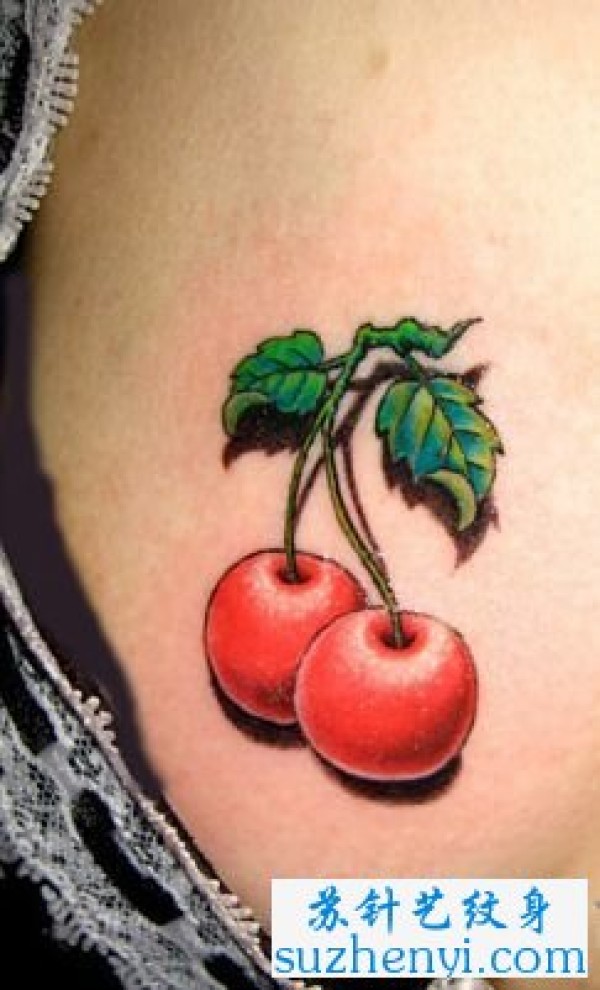 胸部彩色水果樱桃纹身_胸部纹身图案大全_纹身图吧