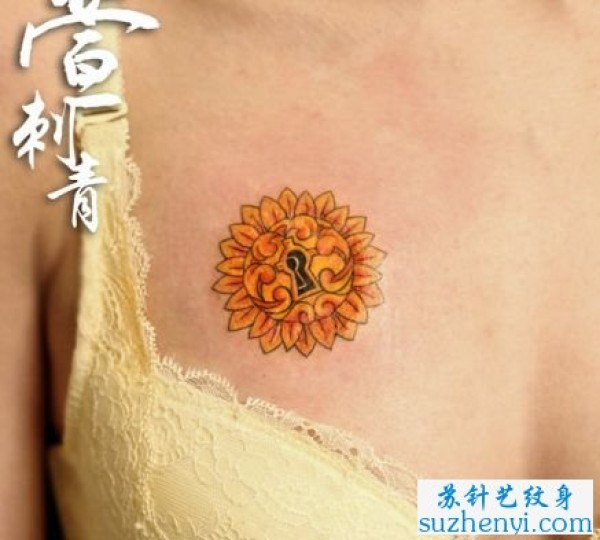 胸部向日葵纹身_胸部纹身图案大全_纹身图吧