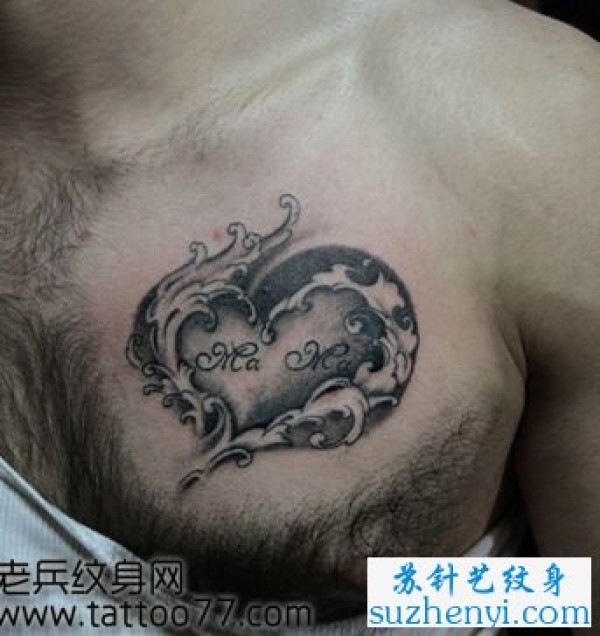 胸部浪花爱心纹身_胸部纹身图案大全_纹身图吧