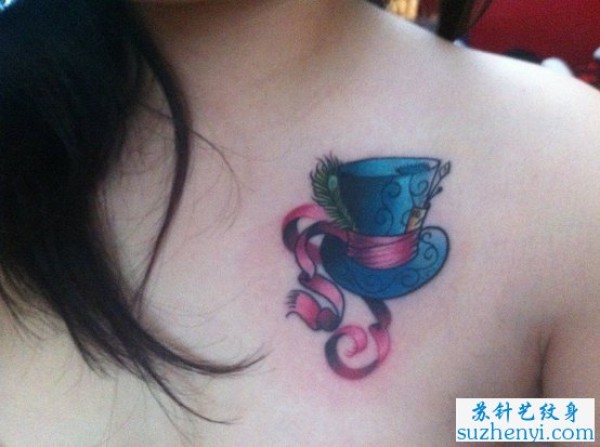 胸部彩色小帽子纹身_胸部纹身图案大全_纹身图吧