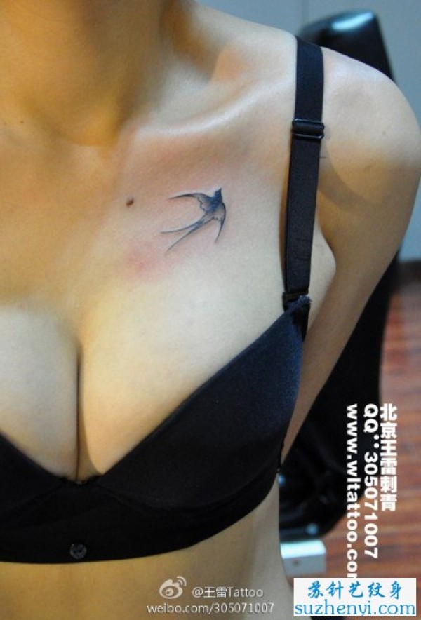 胸前简单好看的小燕子纹身_胸部纹身图案大全_纹身图吧