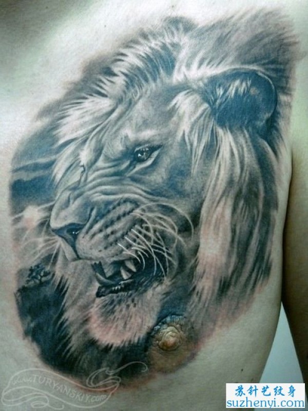 胸部超酷超帅的狮头纹身_胸部纹身图案大全_纹身图吧