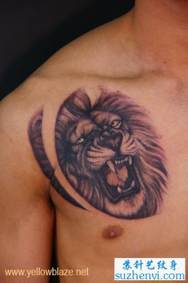 胸部狮子狮子头纹身_胸部纹身图案大全_纹身图吧