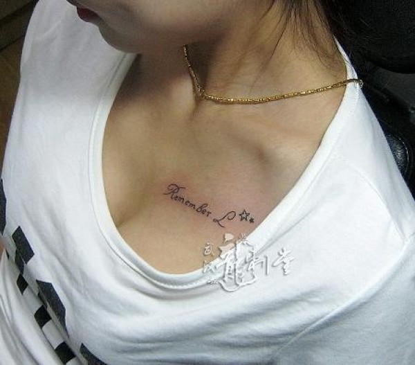 美眉胸部星星文字纹身_胸部纹身图案大全_纹身图吧