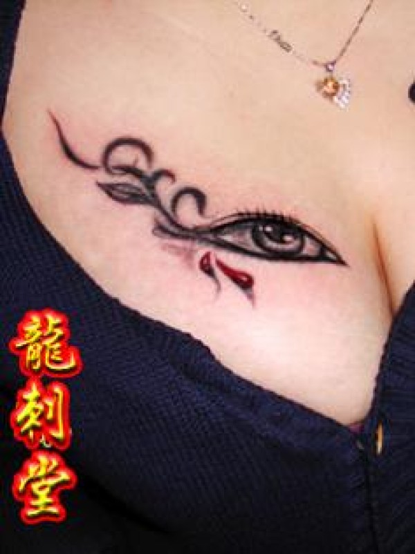 性感胸部眼睛纹身为汉口纹身顾客打造_胸部纹身图案大全_纹身图吧