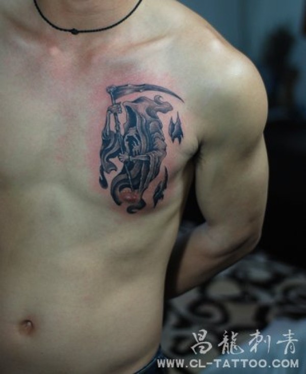 胸部死神刺青_男士小图_胸部纹身图案大全_纹身图吧