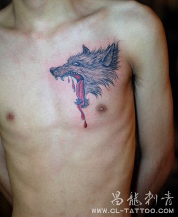 胸部滴血狼头_男士小图_胸部纹身图案大全_纹身图吧