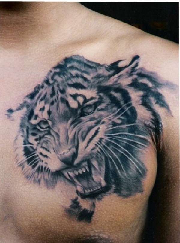 胸前老虎头纹身_胸部纹身图案大全_纹身图吧