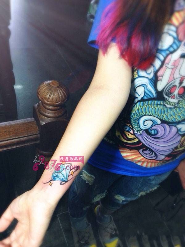 小清新蓝色钻石手腕纹身_小清新纹身图案大全_纹身图吧