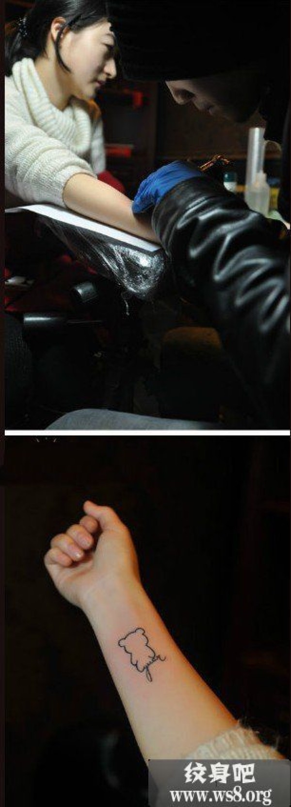 手臂小清新熊熊文字个刺青过程图案_小清新纹身图案大全_纹身图吧