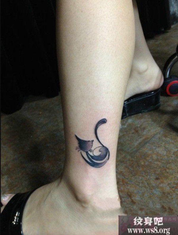 性感猫咪脚踝小清新纹身图案_小清新纹身图案大全_纹身图吧