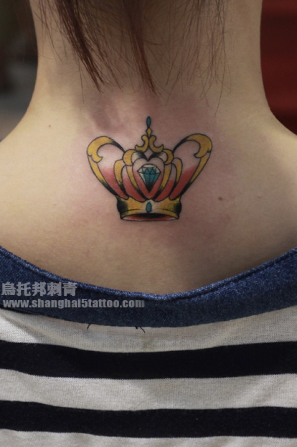 颈部彩色皇冠纹身_小清新纹身图案大全_纹身图吧