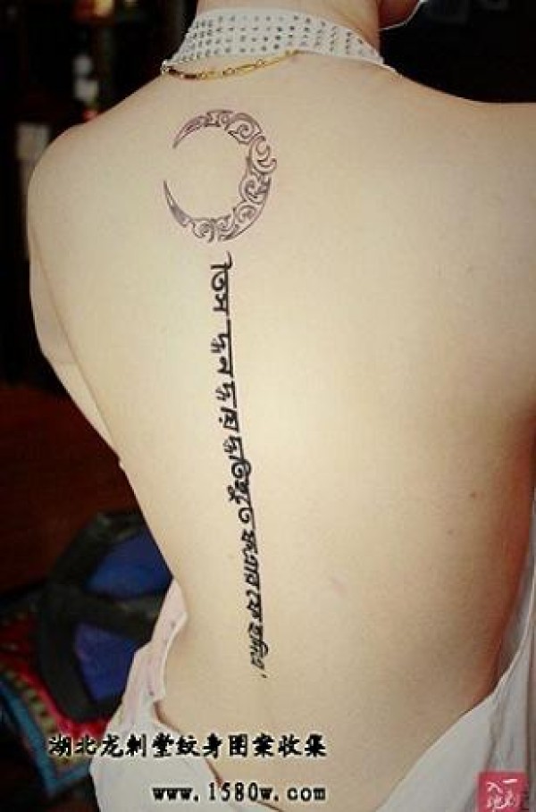小清新纹身图案月亮藏文纹身脊椎纹身_小清新纹身图案大全_纹身图吧