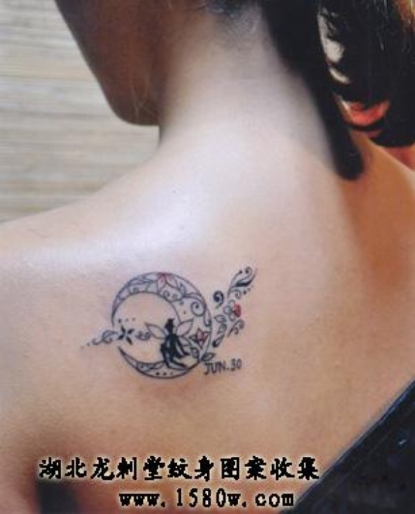 月亮小精灵纹身肩部纹身_小清新纹身图案大全_纹身图吧