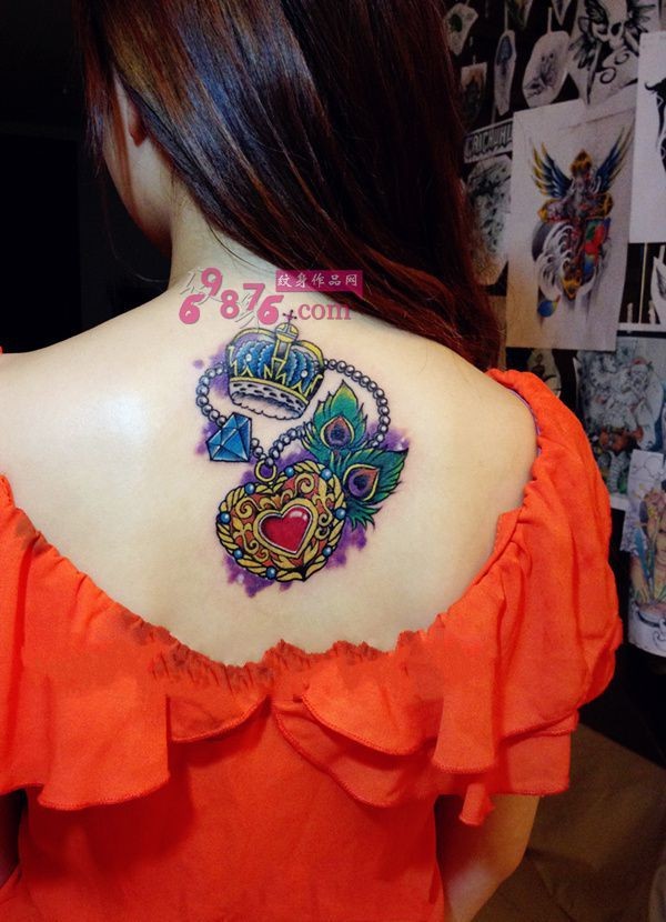 重彩皇冠钻石项链后背纹身_小清新纹身图案大全_纹身图吧